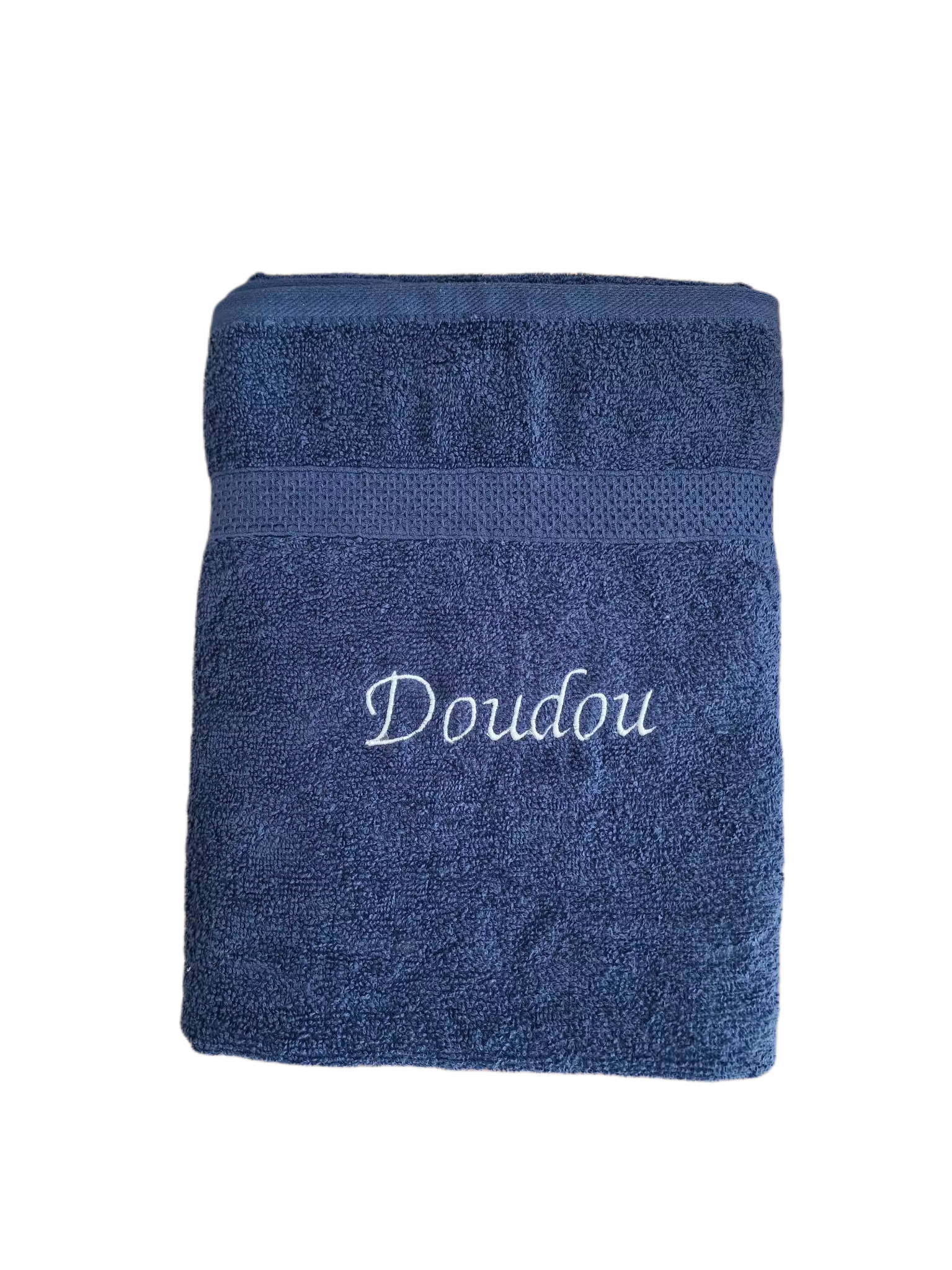 Une serviette de bain bleu foncé personnalisée : Un cadeau original, pratique et unique